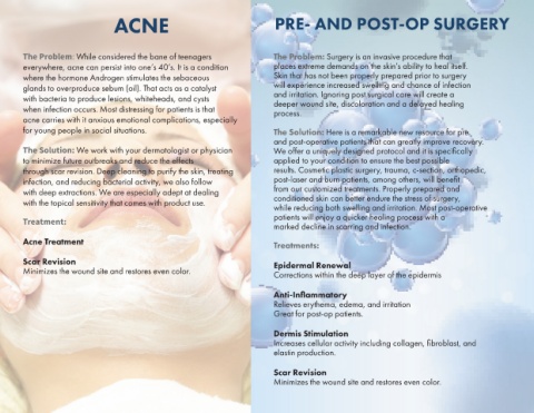 through scar revision. Deep cleaning to purify the skin, treating results. Cosmetic plastic surgery, trauma, c-section, orthopedic,